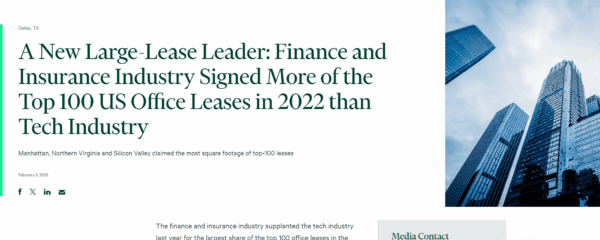 cbre.com | A New Large-Lease Leader: Finance and Insurance Industry Signed More of…