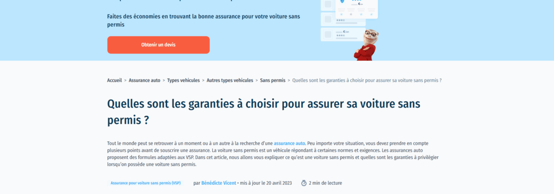 lesfurets proposent un comparateur d’assurances adaptées aux voitures sans permis. Il permet de comparer facilement les offres de plusieurs assureurs en quelques clics. Vous allez pouvoir trouver une assurance répondant au mieux à vos besoins tout en respectant votre budget. Vous devez remplir un formulaire de devis en ligne.